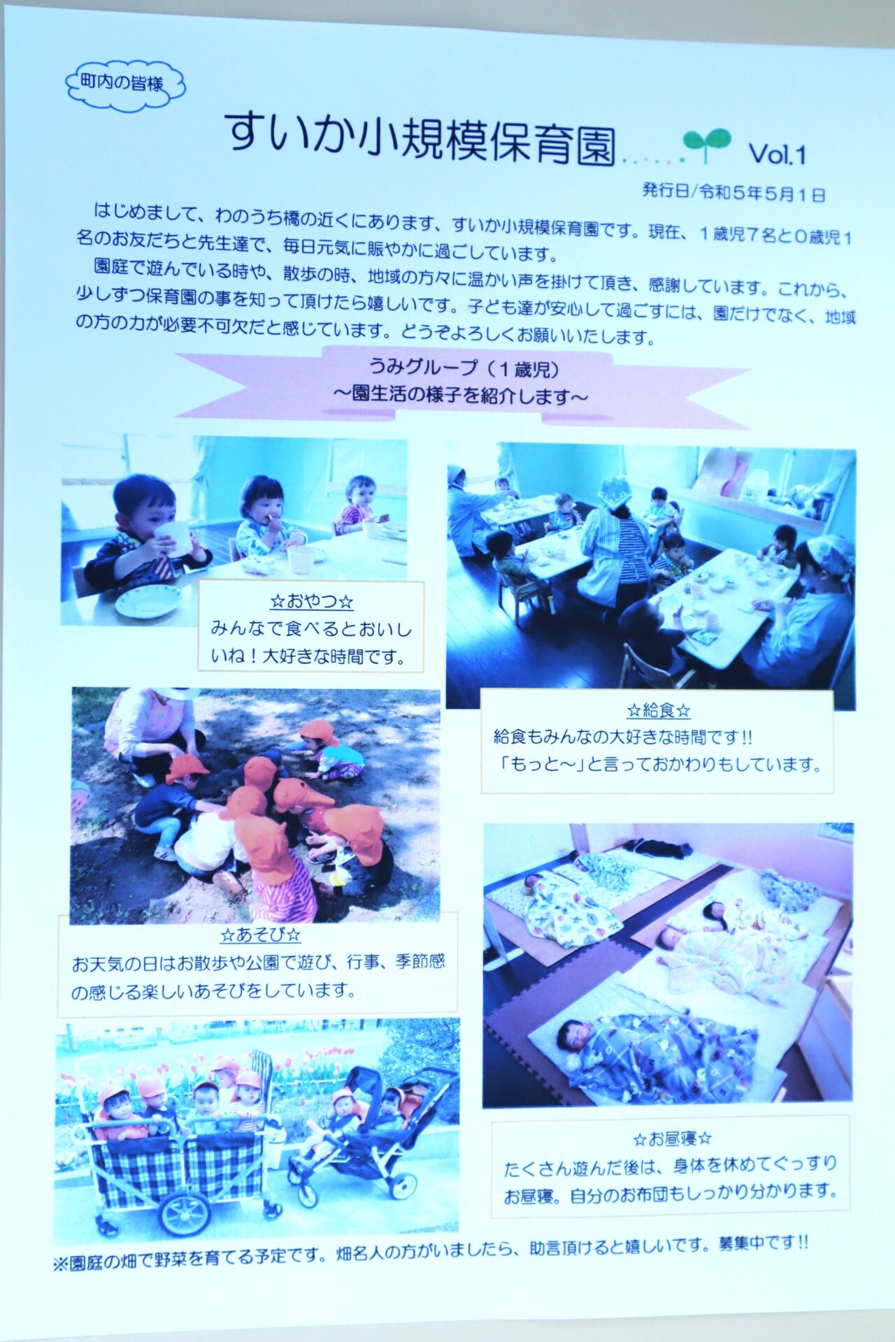 第一歩として、町内の回覧板で、保育園の紹介をさせてもらいます✨
