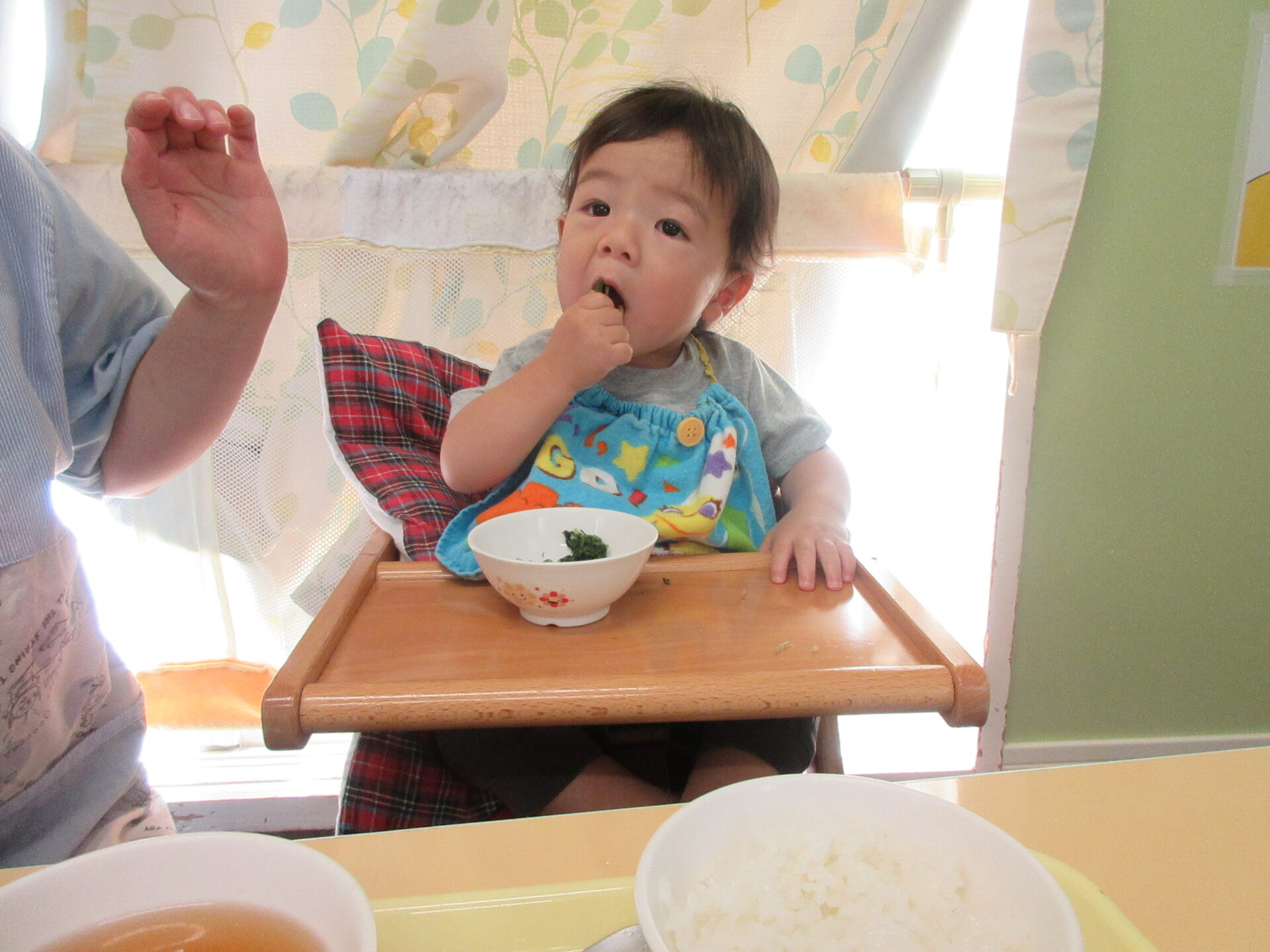 自分で手づかみをして上手に食べることができます!”もっとー”と、食べることが大好きなお友だち。
