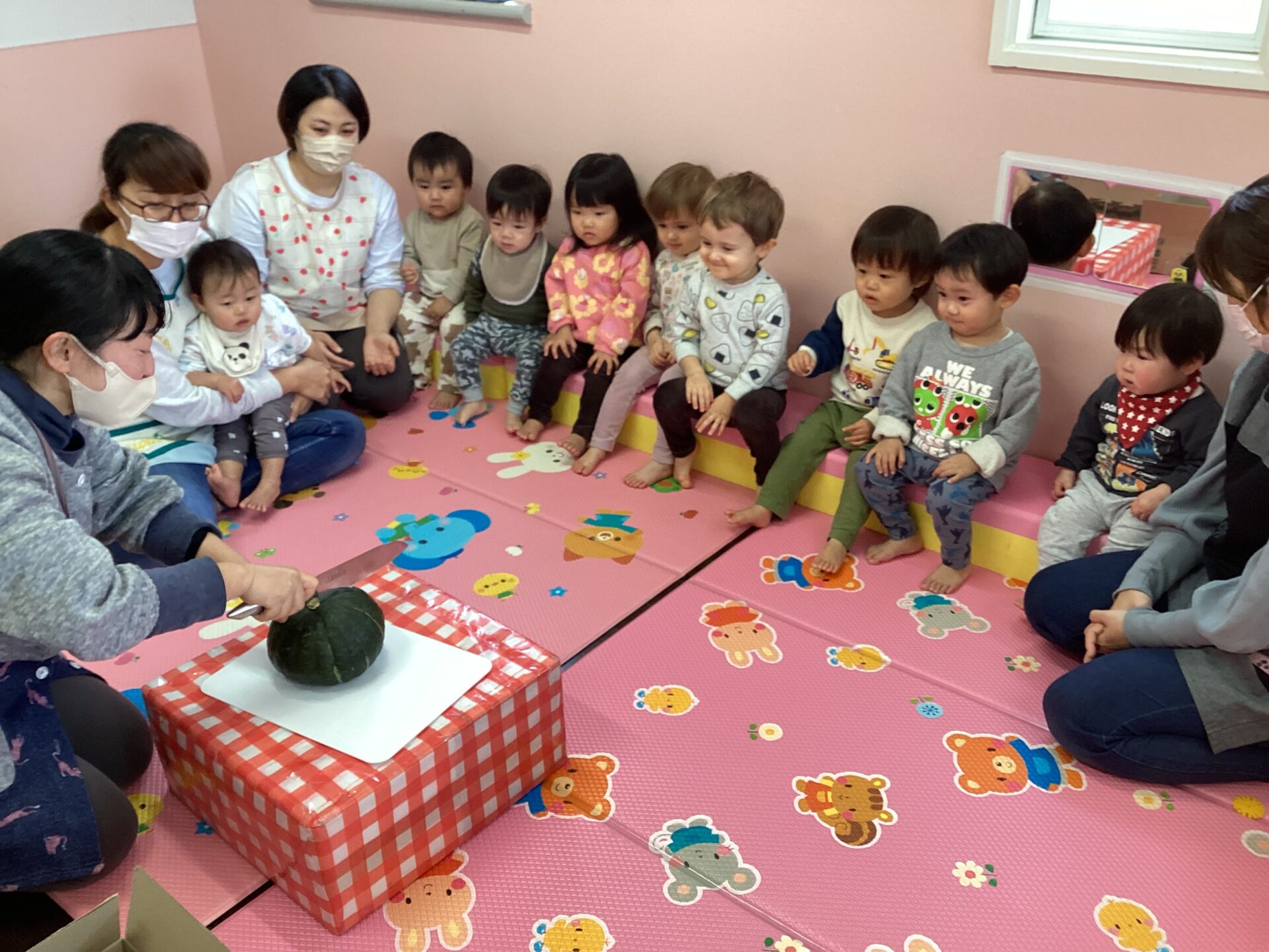 まだまだ寒い日が続きますが、すいか小規模保育園のみんなが寒い冬を元気いっぱい過ごせるように願いをこめた、楽しい冬至の活動でした。柚子をとても気に入って、お家に持って行き、柚子湯を楽しんでくれたお友だちもいました😊