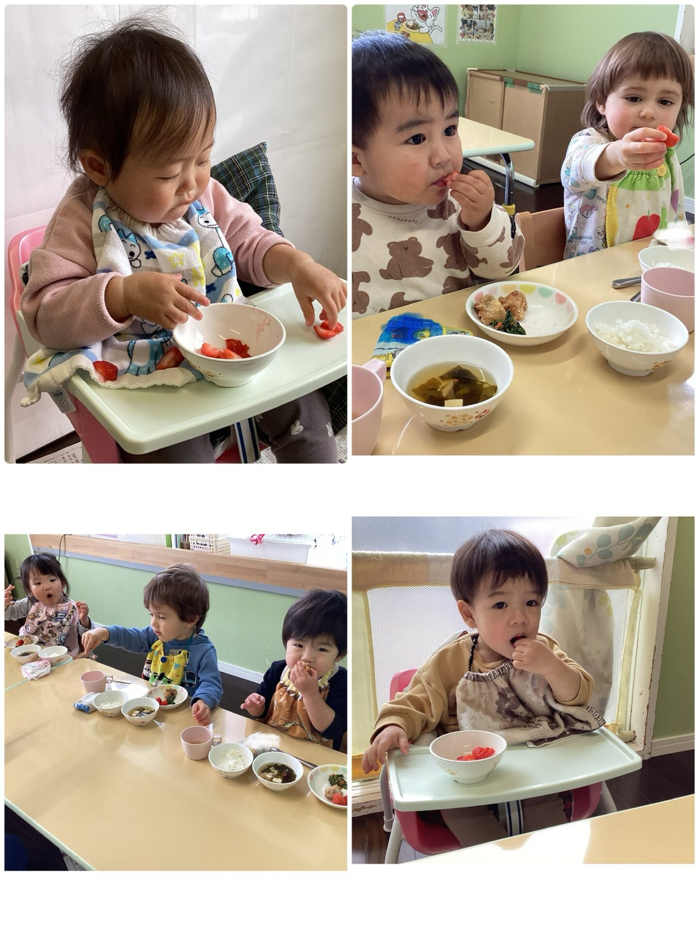 そして今日の給食は、今が旬のイチゴがでました🍓唐揚げやお吸い物も喜んで食べました。