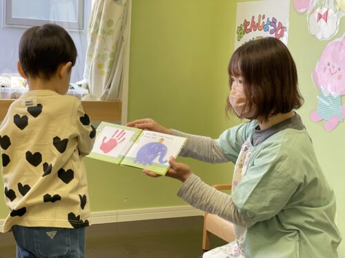 すいか小規模保育園では、お誕生日の当日に誕生会を行い、うたやバースデーブック、先生からのお楽しみをプレゼントします。
