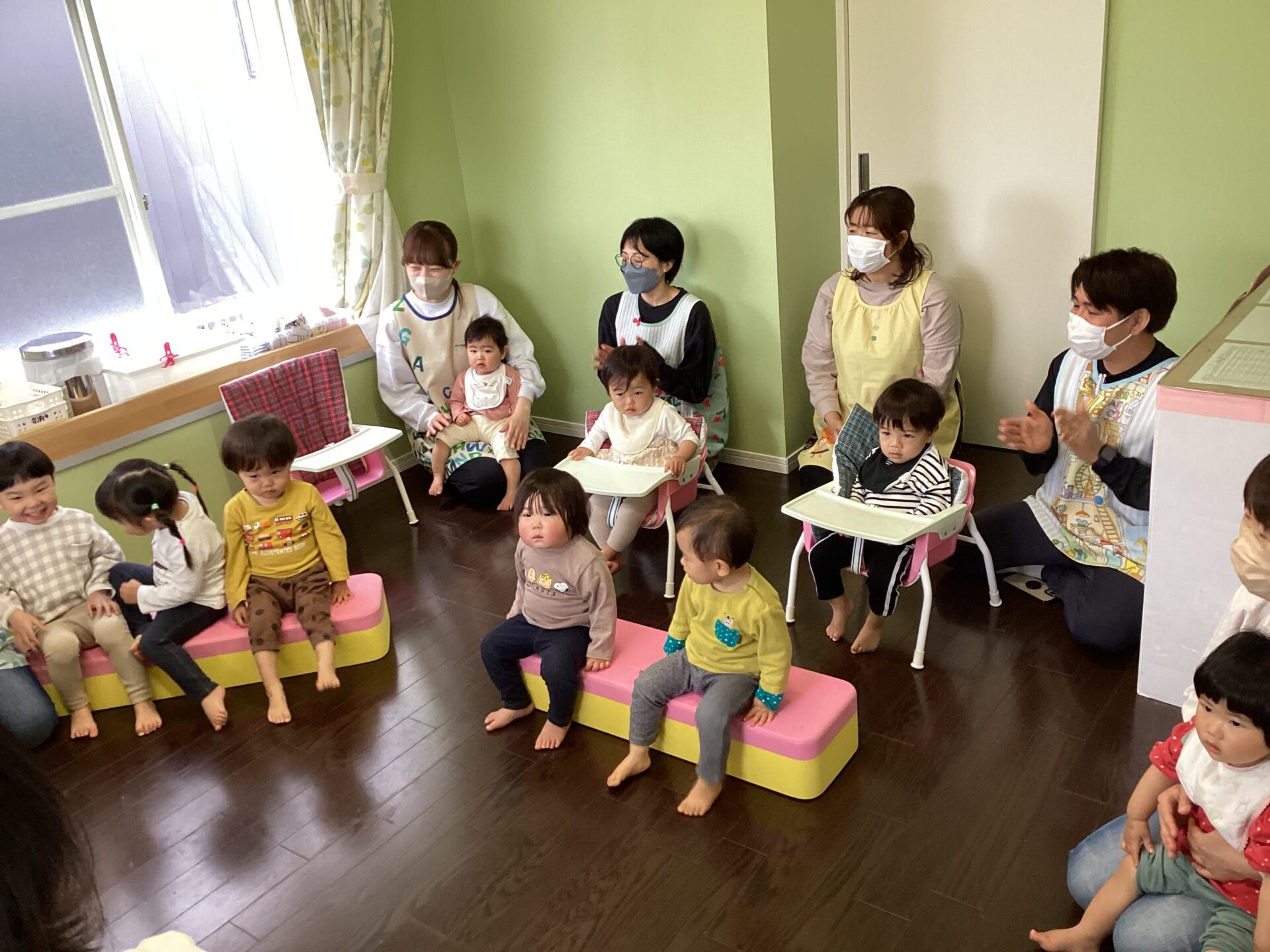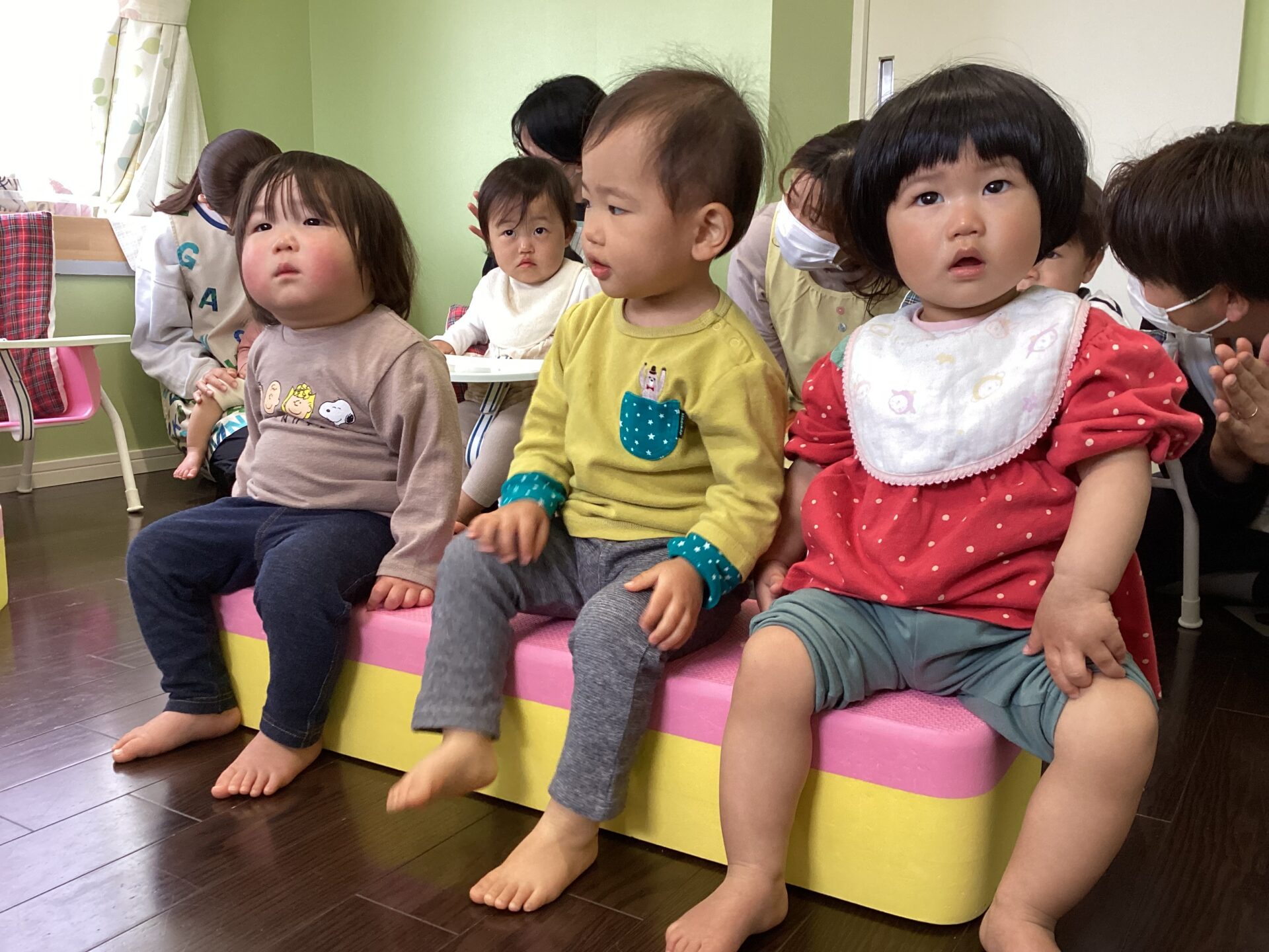 音楽に合わせて読んでもらった絵本は、真剣な眼差しで見て、聞いていました👂