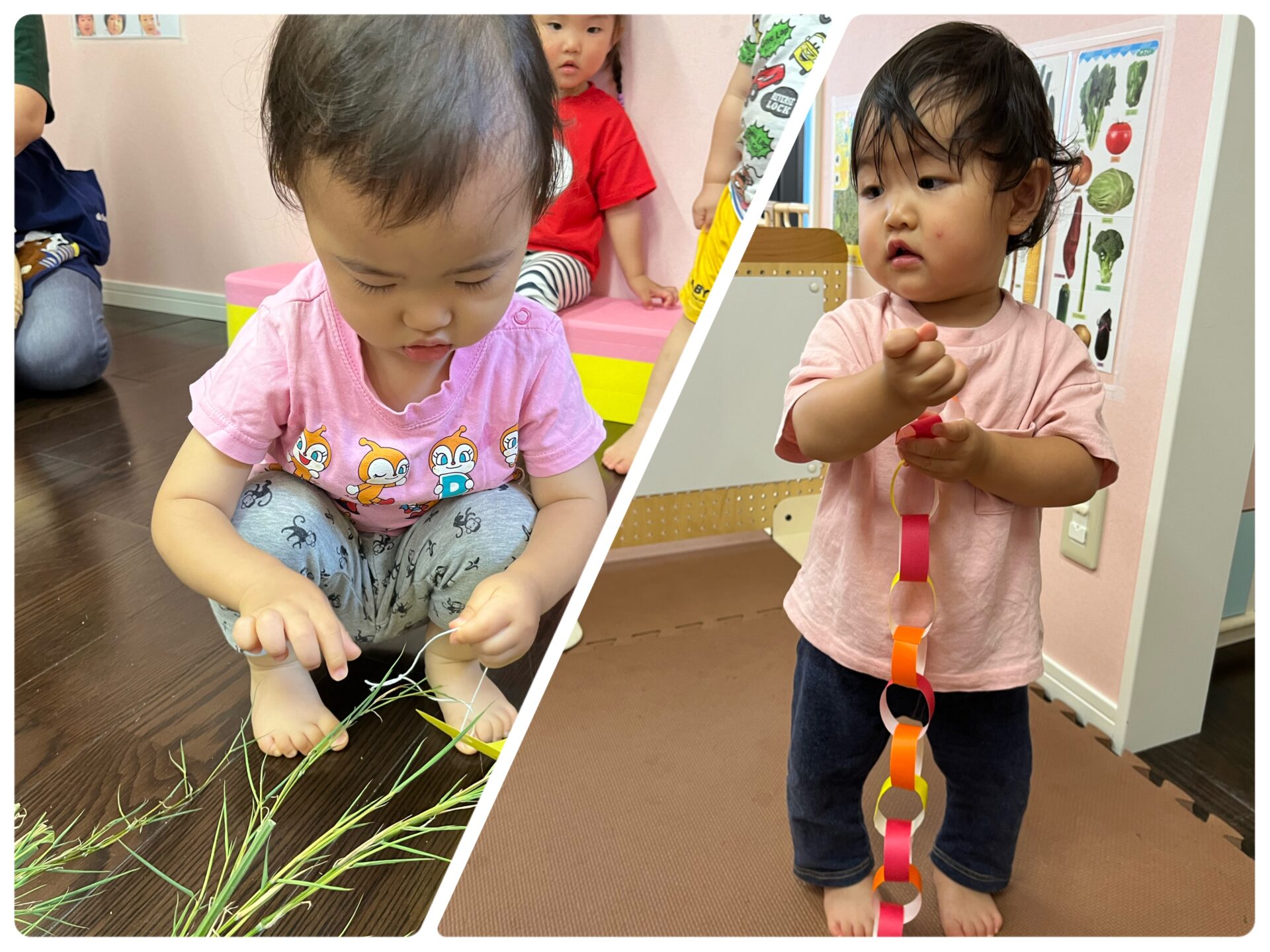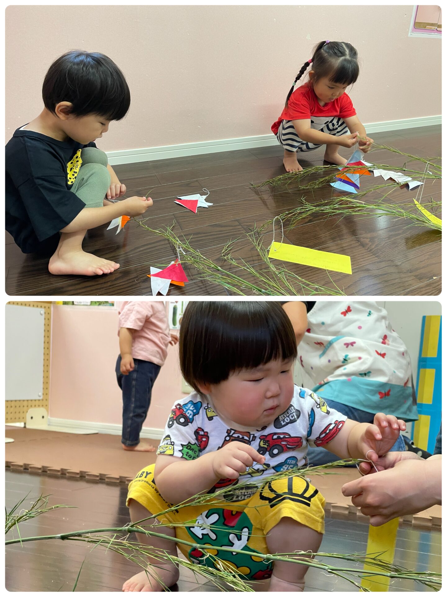 それでも、みんなで飾りをつけようと誘うと、「ぼくの短冊ちょうだい」「どこにつけようかな?」とやる気満々の子どもたちでした!