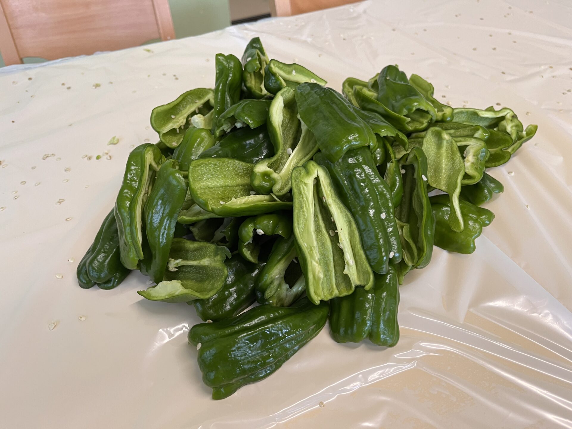 みんなで力を合わせて、こんなに沢山のピーマンの種を取りました!