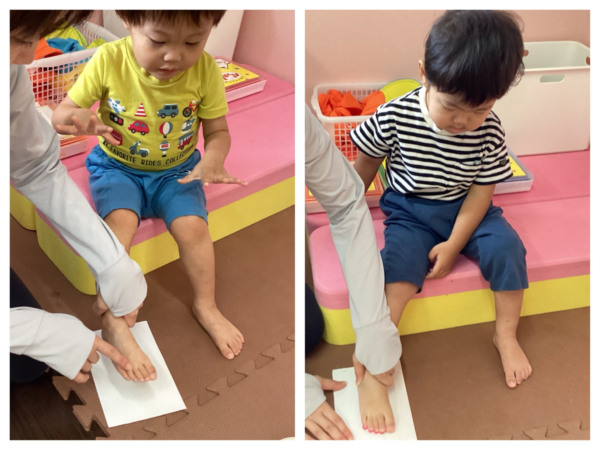 スタンプを足の裏につけて、ぺったんこ👣11名の可愛い足型がとれました。