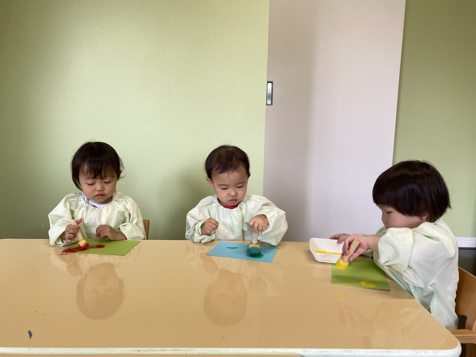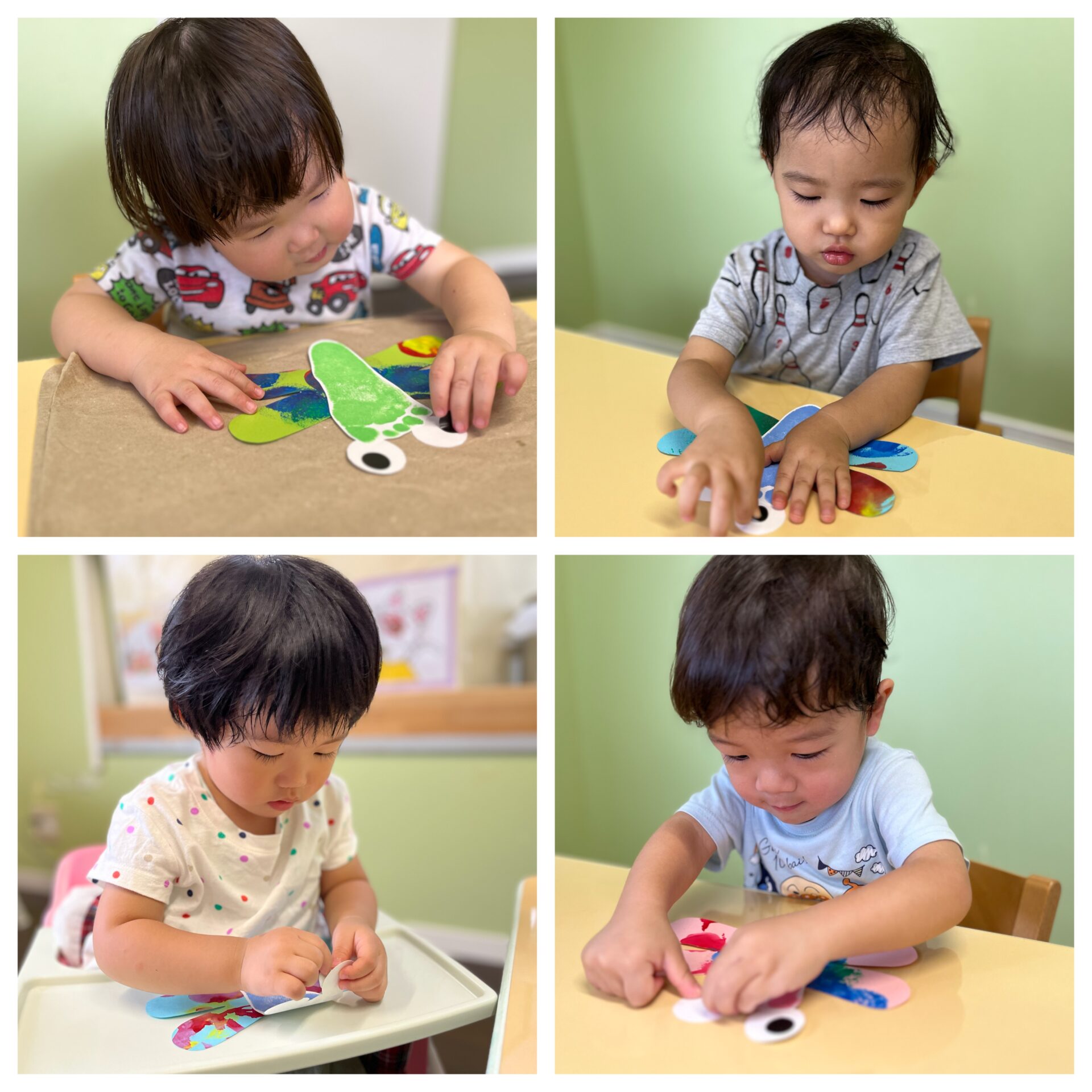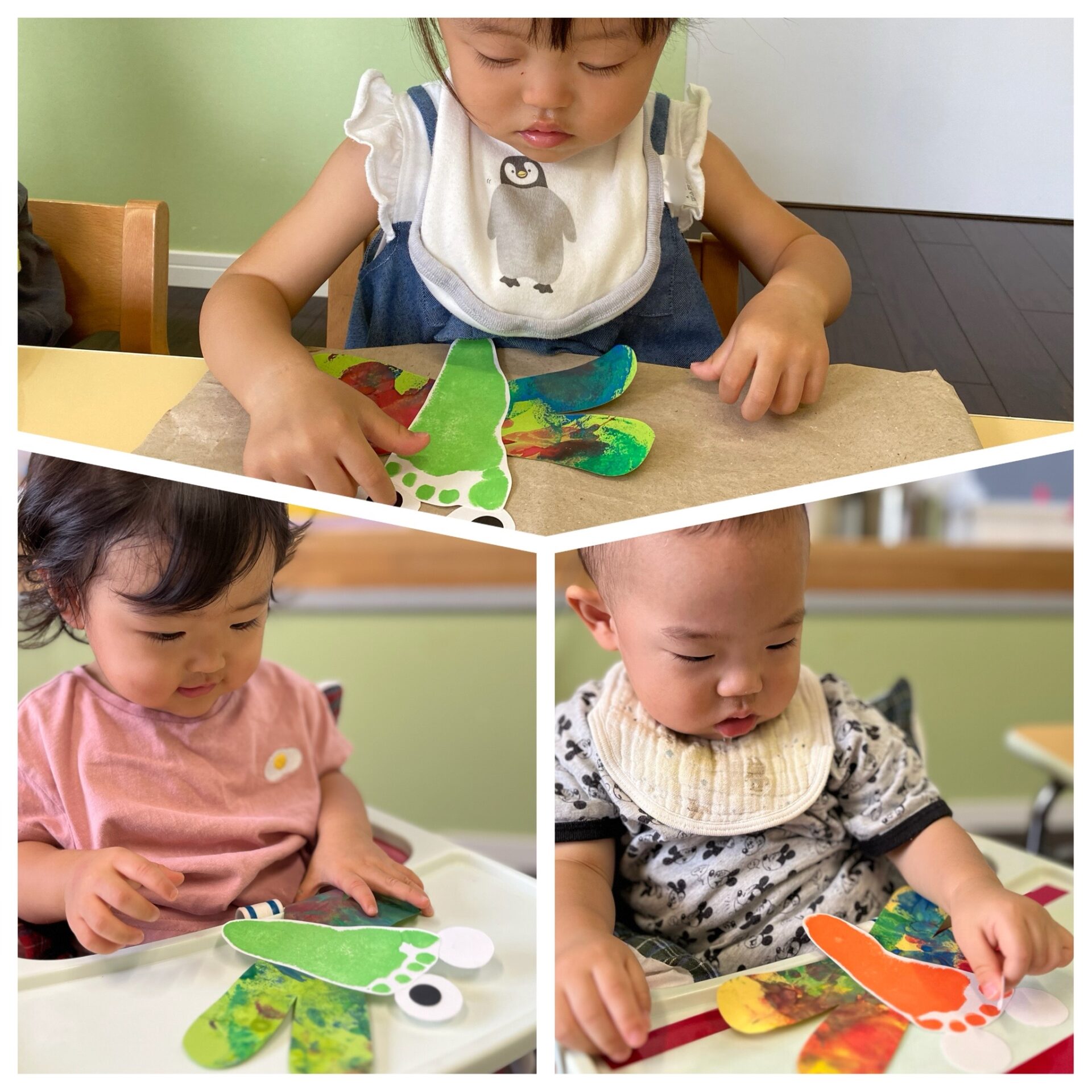すいか・うみグループさんは、シールを貼って黒目をつけました。指先を使ってぺったんと貼ることが上手になりました。手先がどんどん器用になっていますね👆