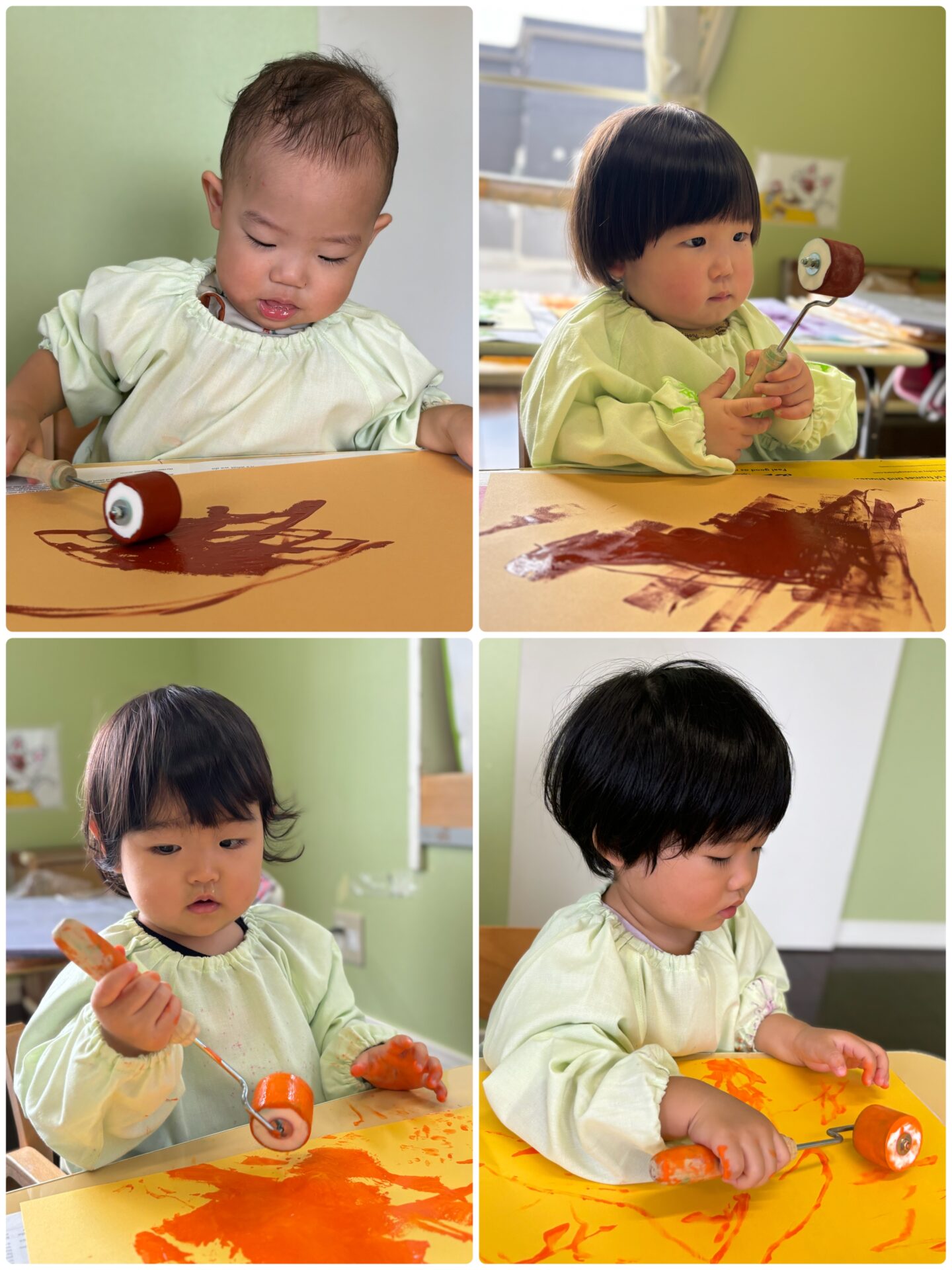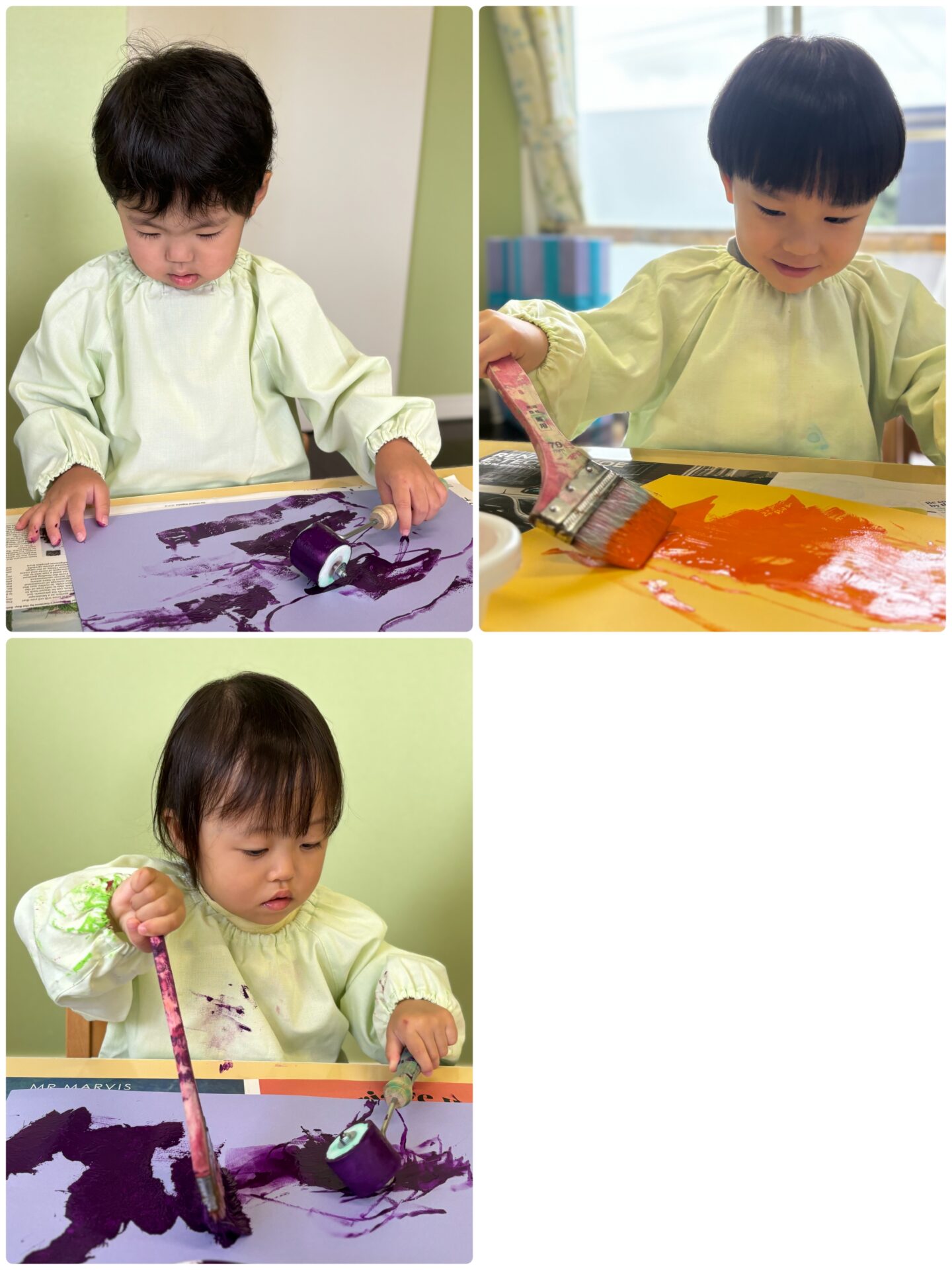 中には、ローラーとハケを両手に持ち、二刀流のお友だちも・・・😆