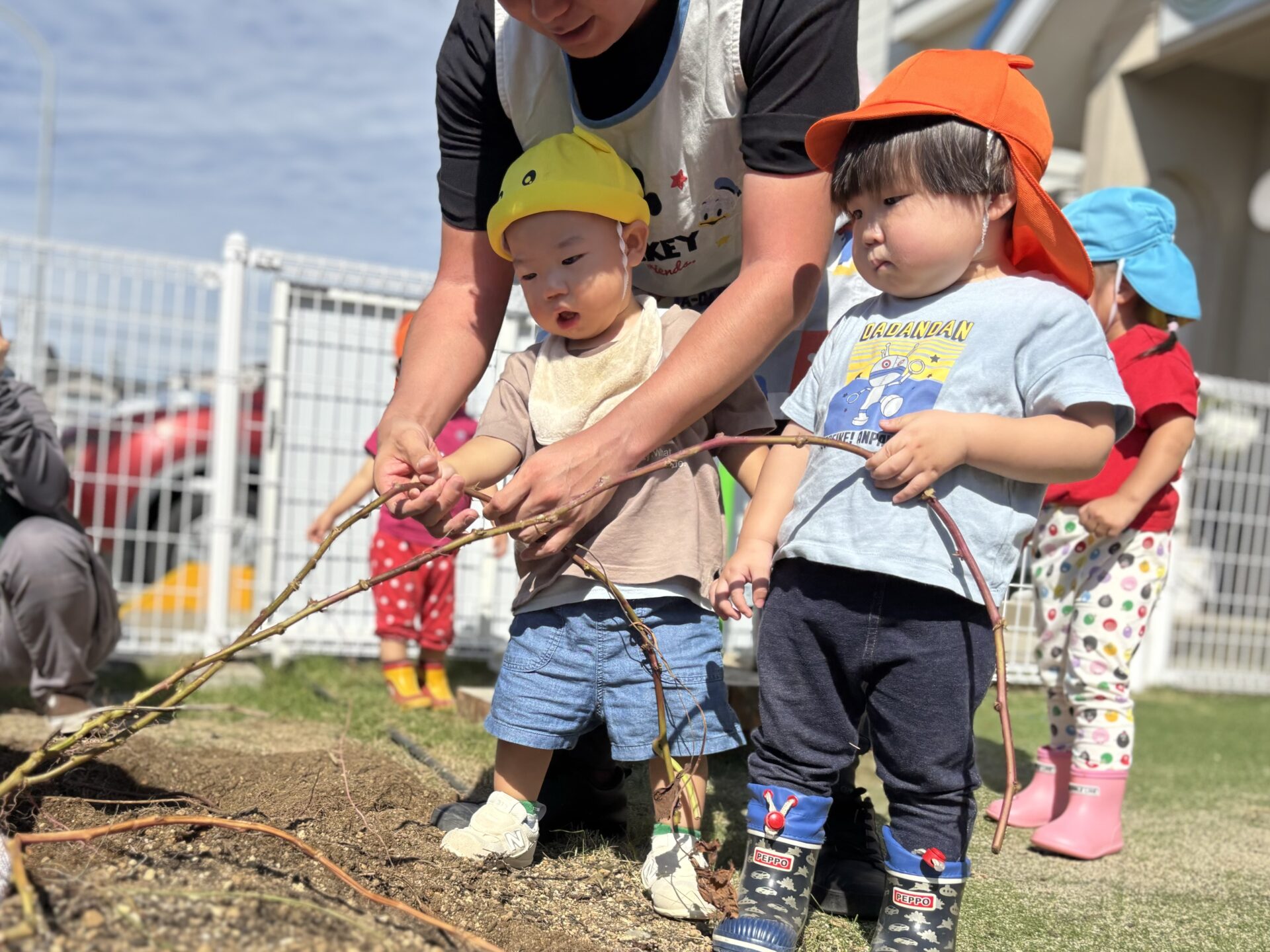 小規模保育園の園庭では、毎年さつまいもを育てています。