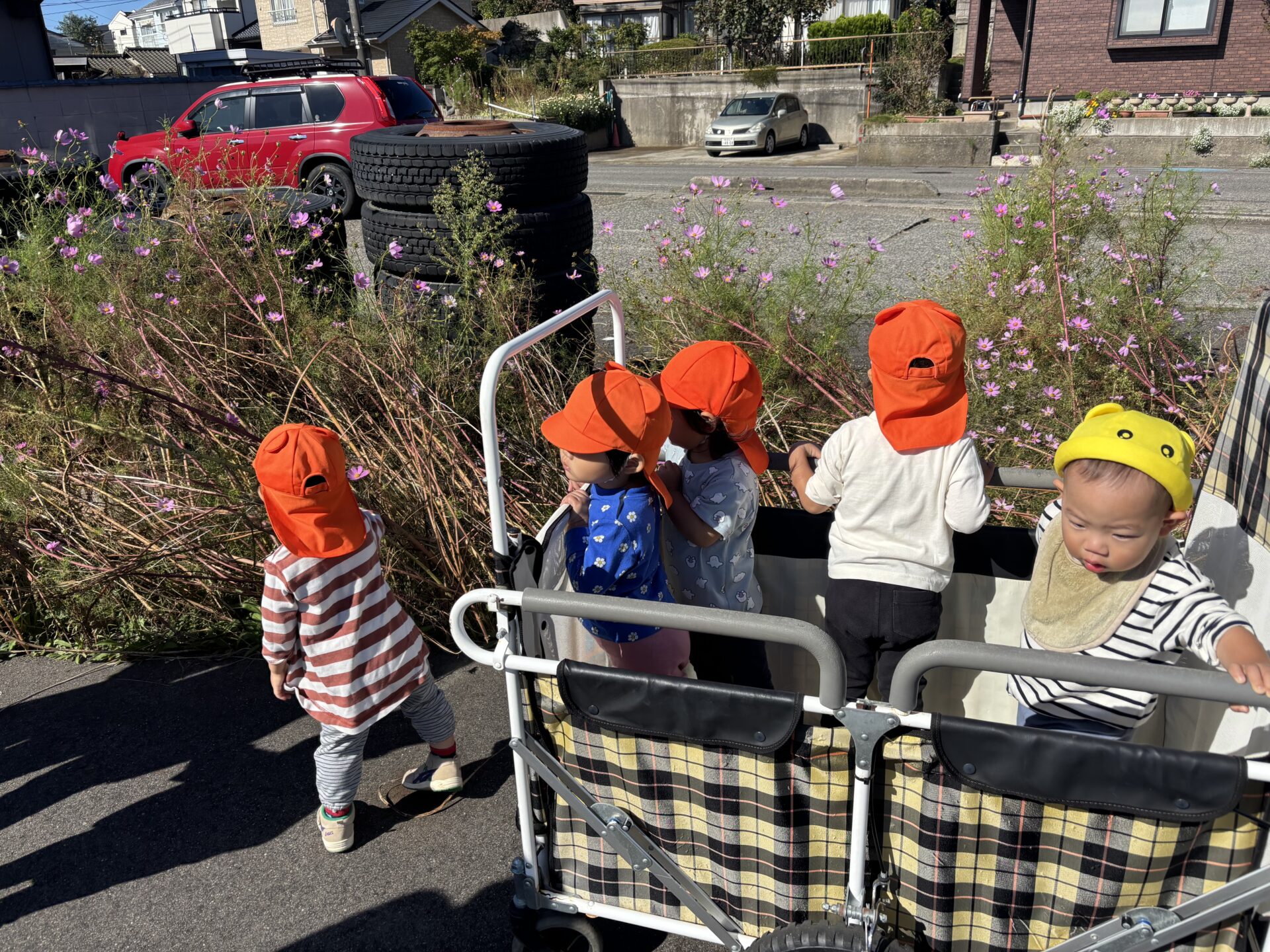 「ピンクのお花だね」「いっぱいあるね」とそれぞれ可愛い感想をお話ししてくれます。
