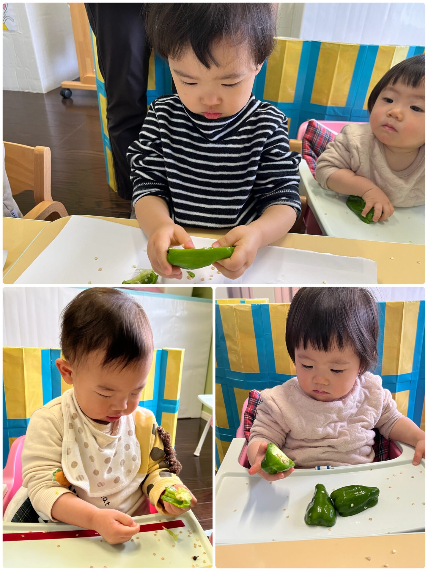 ピーマンがとても美味しそうに見えたのか??つい、口に入れようとするお友だちが何人かいました…