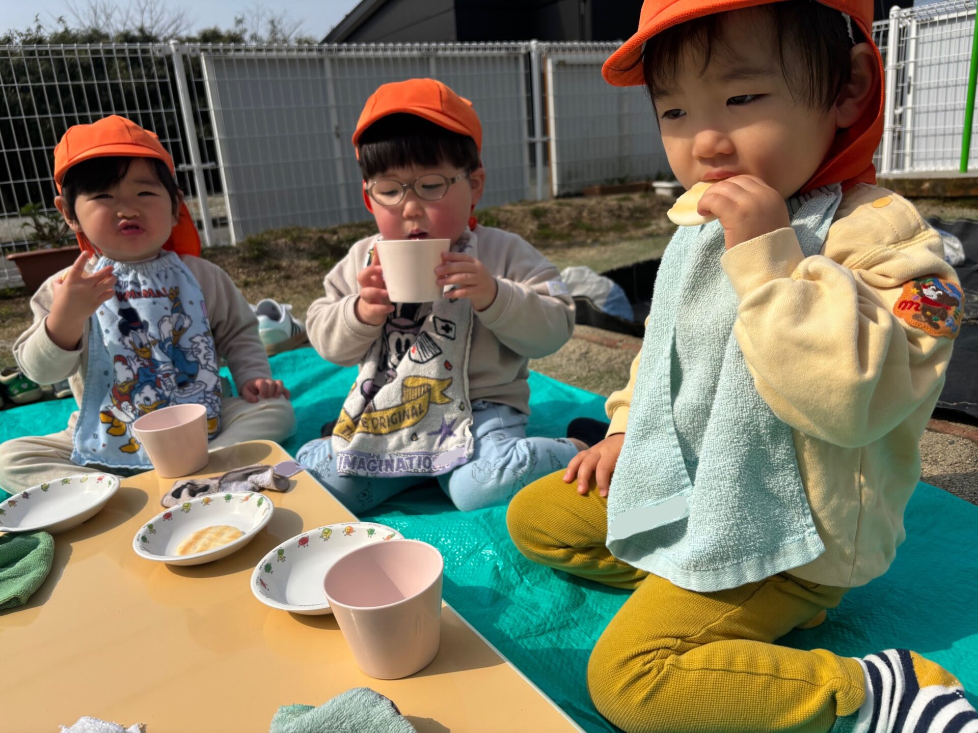 お外で食べるおやつは特別で、いつも以上に喜んで食べていました!苦手な牛乳をごくごくと飲めたお友だちもいましたよ👏