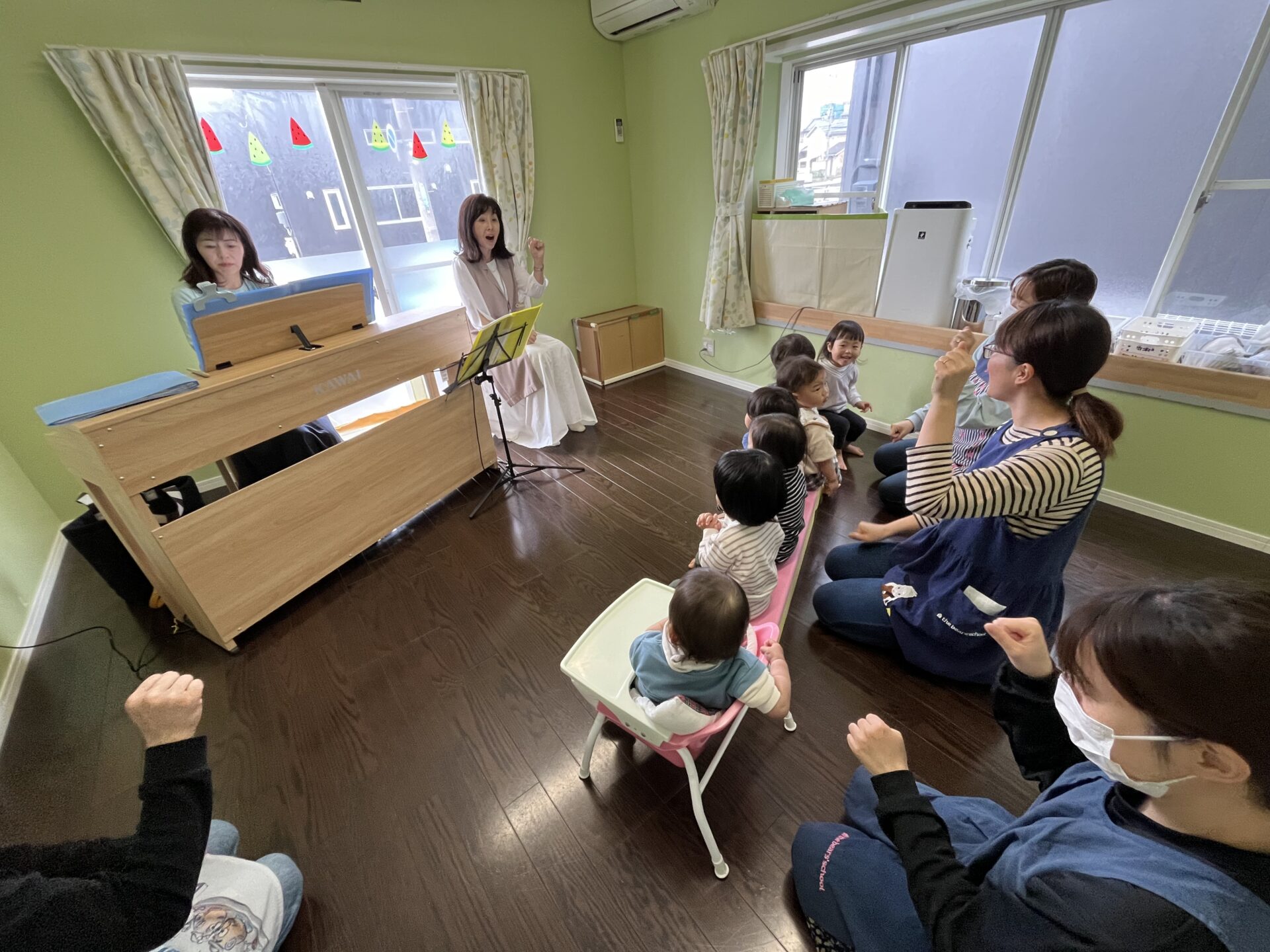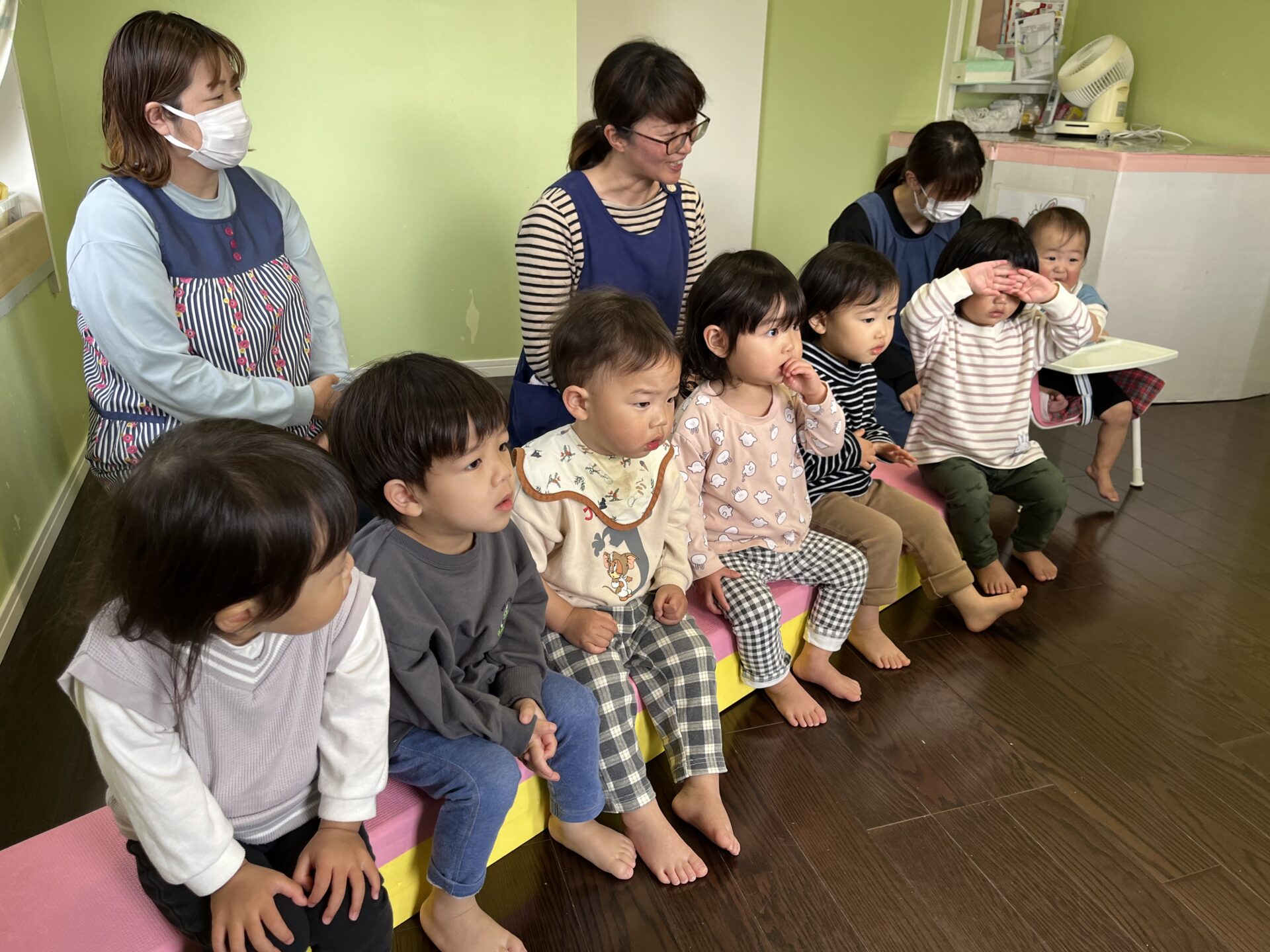 『チューリップ』『手をたたきましょう』など、普段から歌って知っている曲が続き、子どもたちの表情も和らいでいきました。