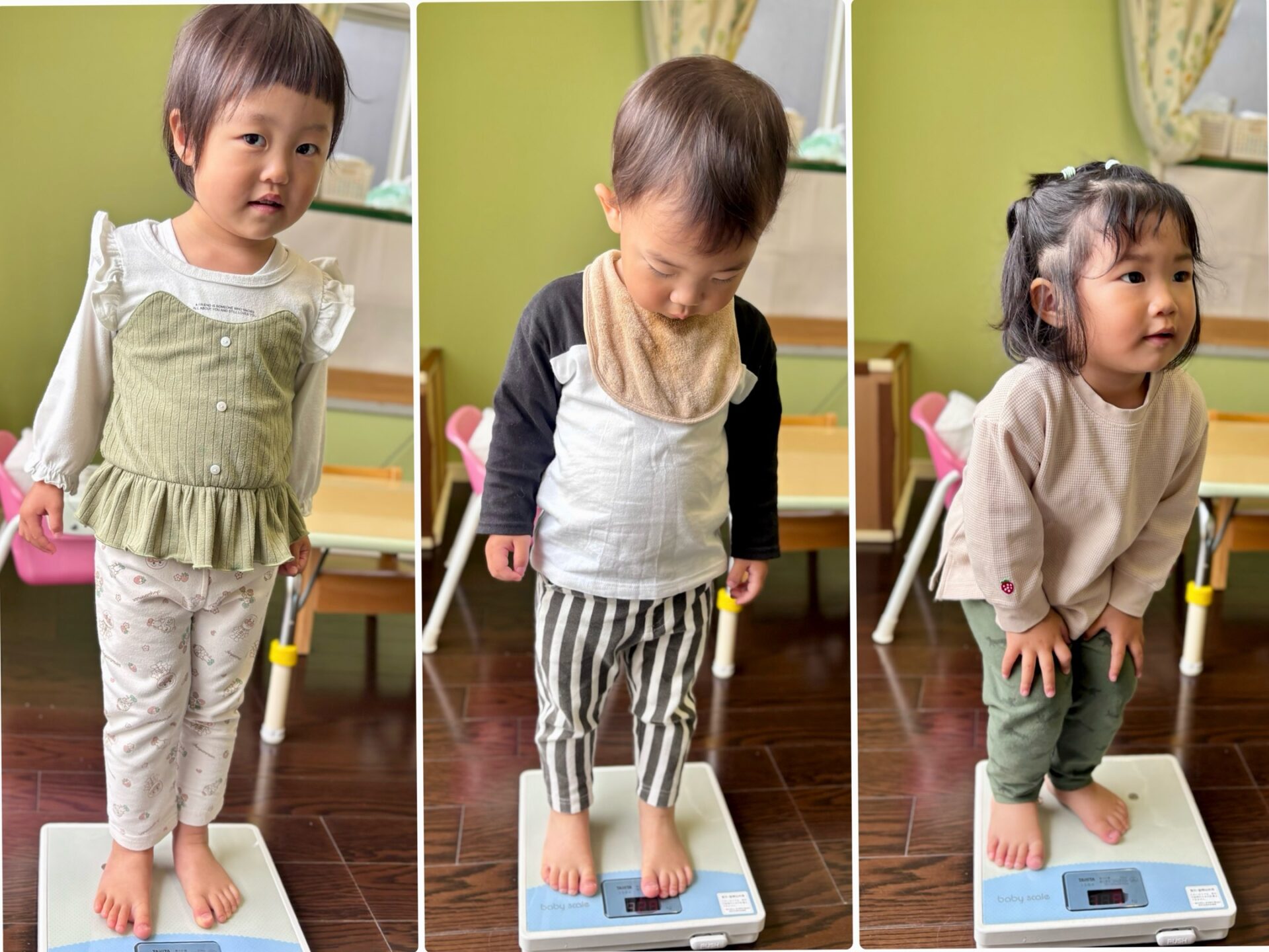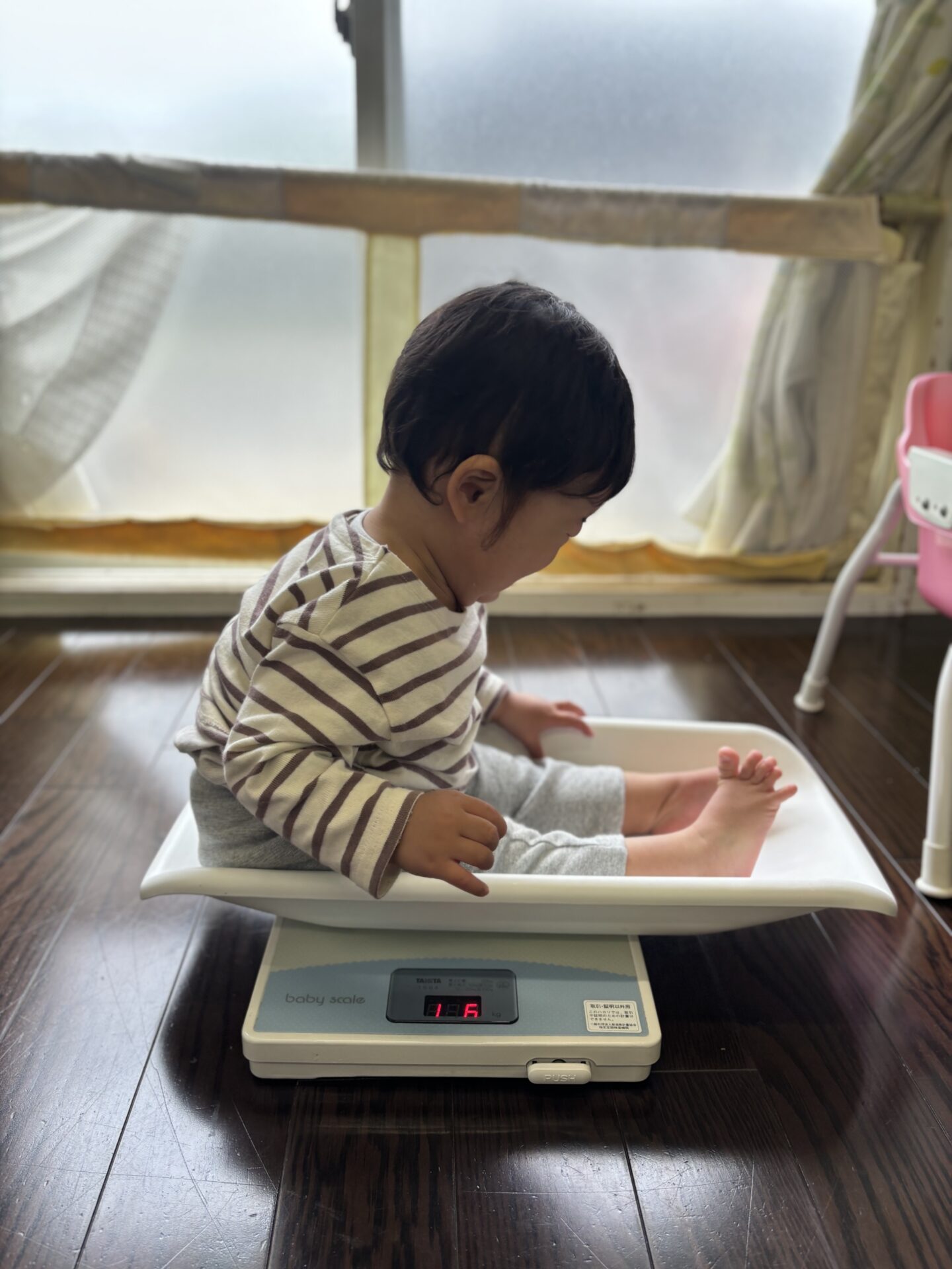 体重測定ではそっと体重計に乗り、数値が出るまで少し動くのを我慢。数字が動くのを、下を向いてまじまじと見ていましたよ🤔