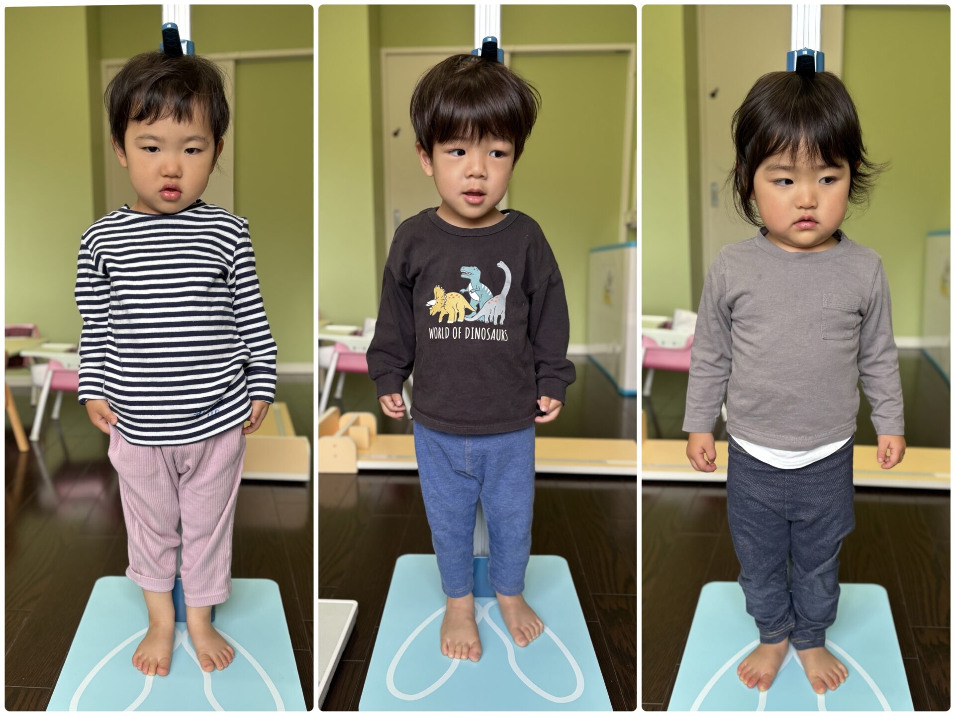 器具の準備をしていると、何してるの?と子どもたちが見にきます。発育測定に慣れている子たちは、“怖くないこと”“大きくなったのが分かる!”と積極的です😊