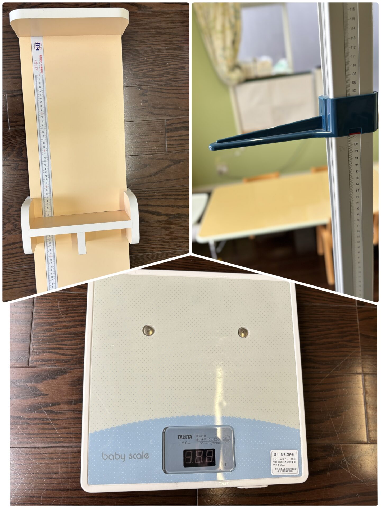 身長計は寝て測るものと、立って測るものがあります。足の位置を揃えて立つことは月齢によっては難しいため、子どもたちの発達に合わせてベッド型も使用しています。