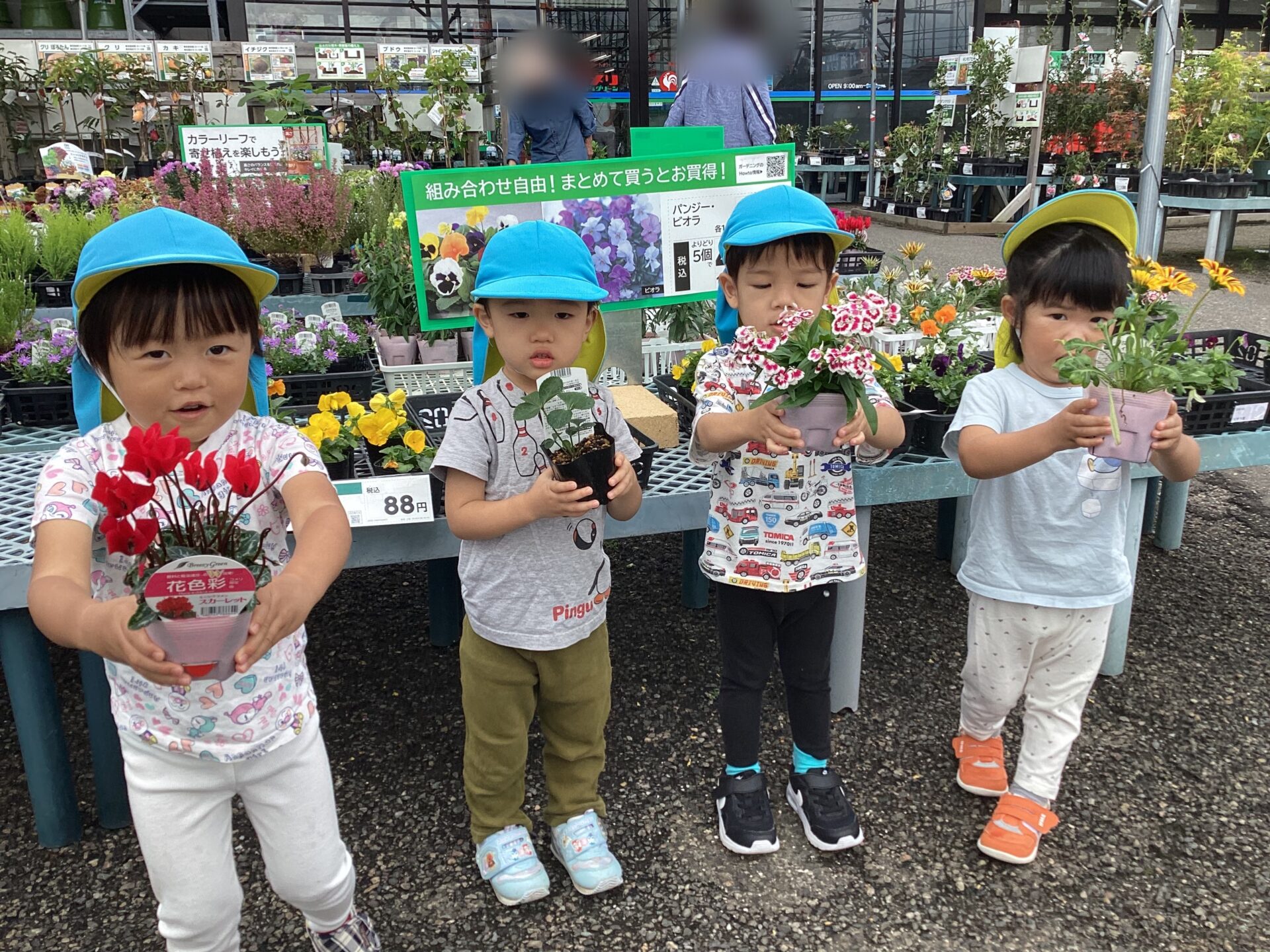 お買い物に行った時にお花も一緒に買いました🌸1人1つずつ好きなお花を選び、色も形も様々な綺麗なお花を買うことが出来ました。