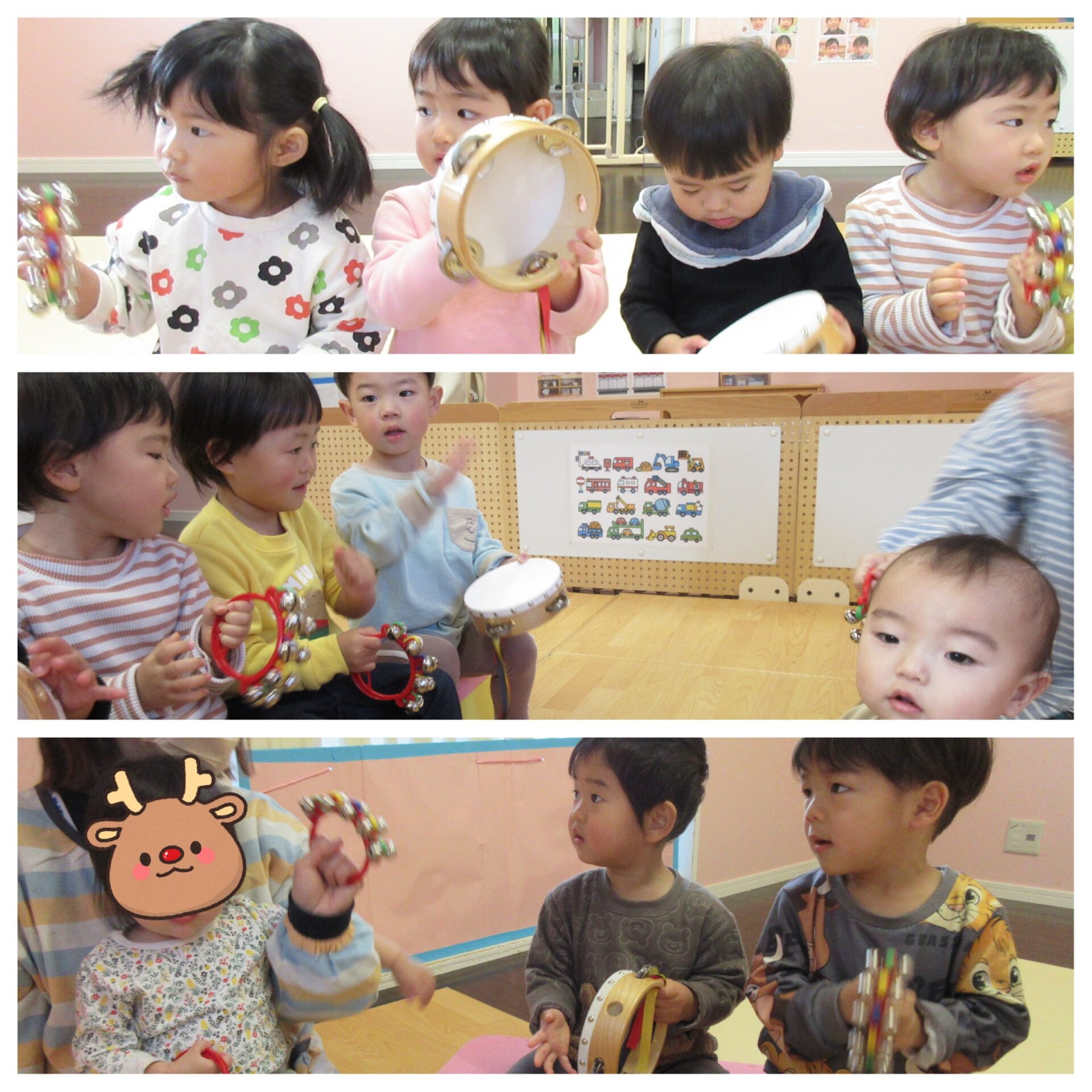 子どもたちは、『クリスマスのうたがきこえてくるよ』のおどりを踊ったり、タンブリンや鈴を使った合奏をしたりして、クリスマスを心待ちにしています🌟