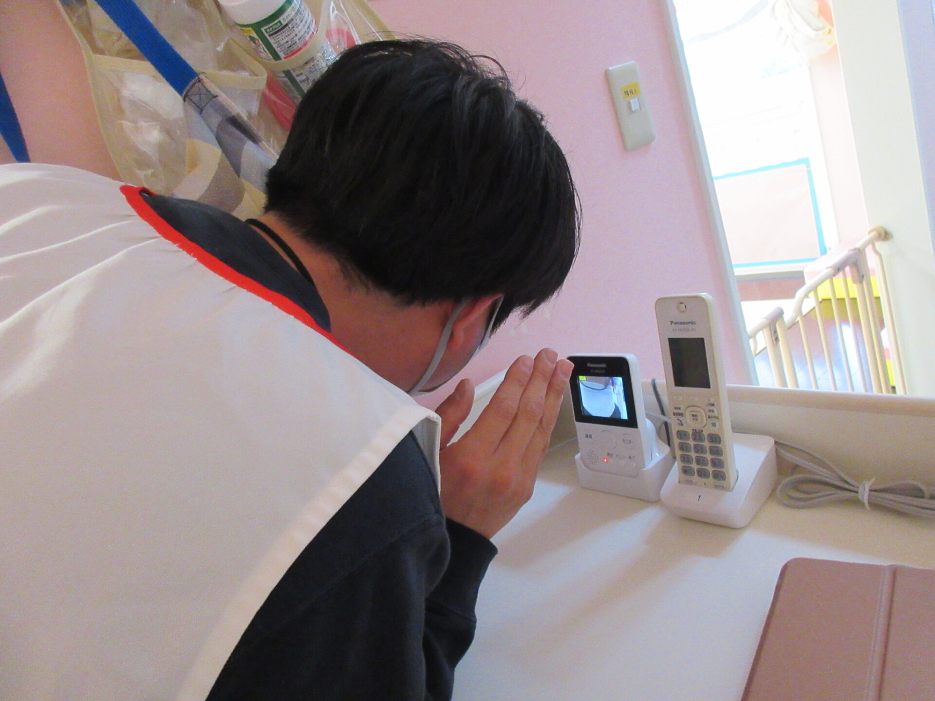 この日は保育者が不審者役となり、外からインターホンを押しました。