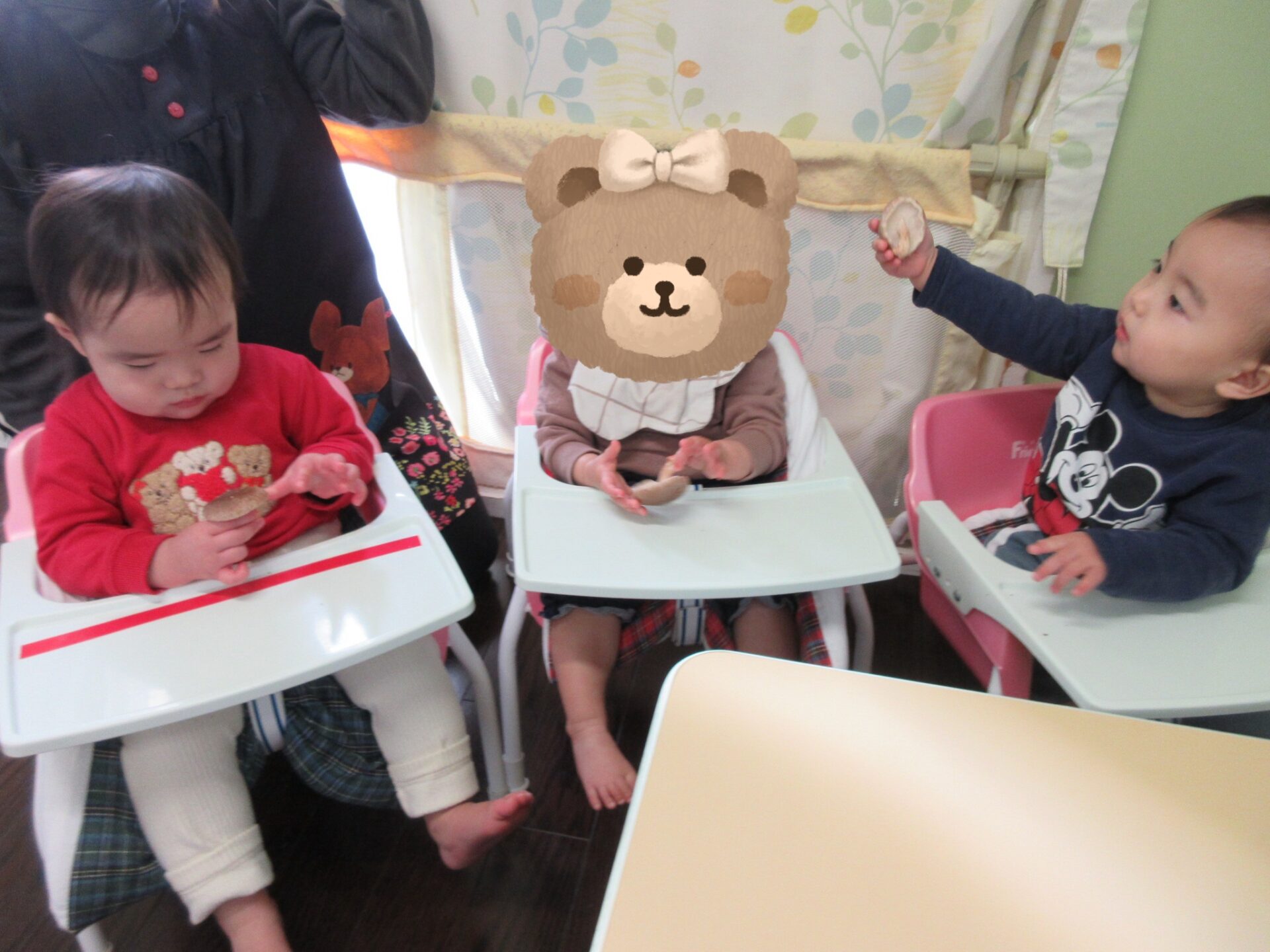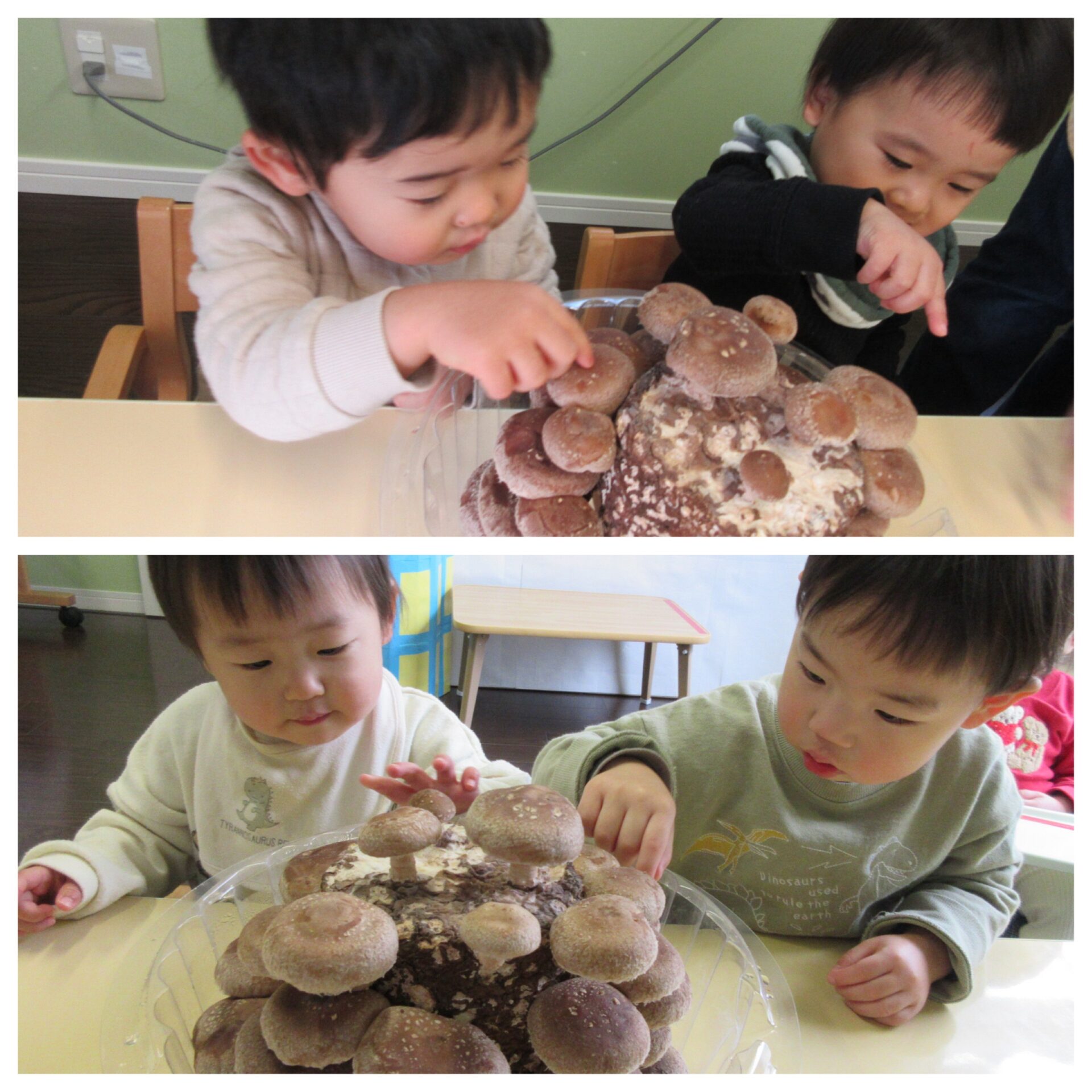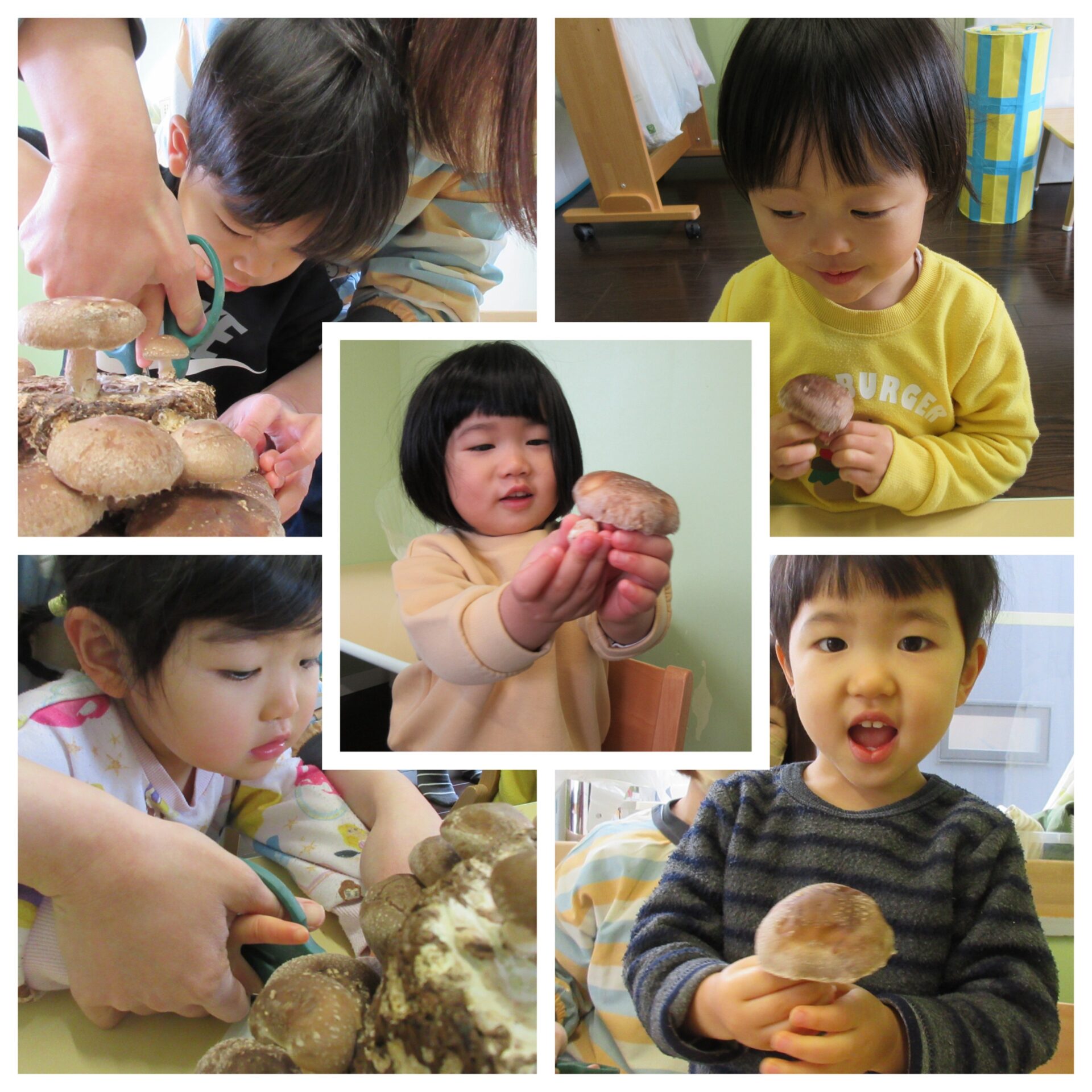 0・1歳児(すいか・うみグループ)はしいたけを支えたり、じっと見つめて保育者がはさみで切るところを応援してくれました📣