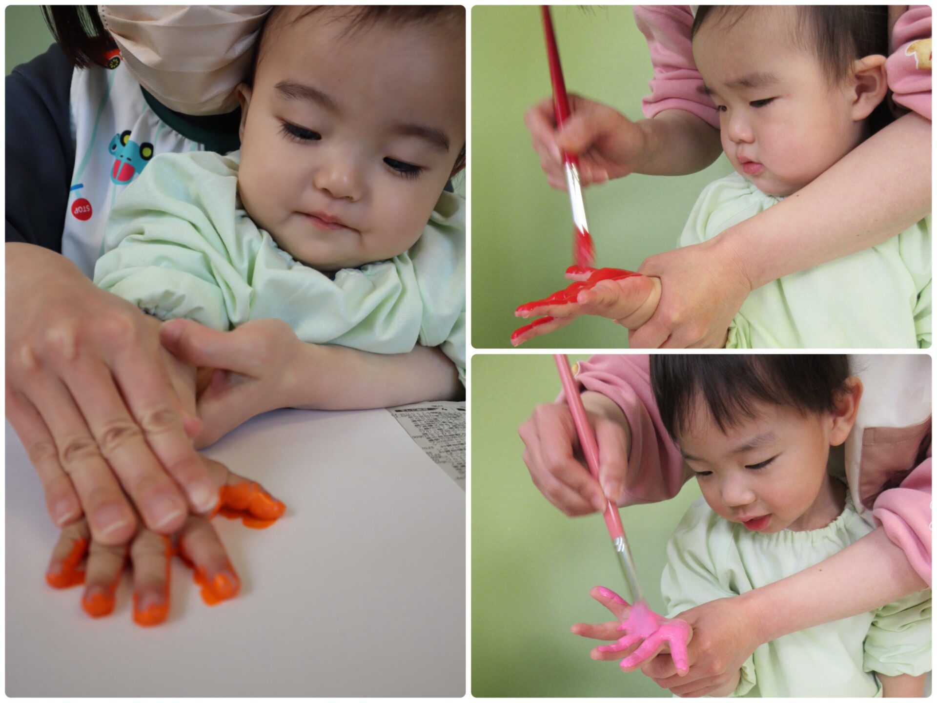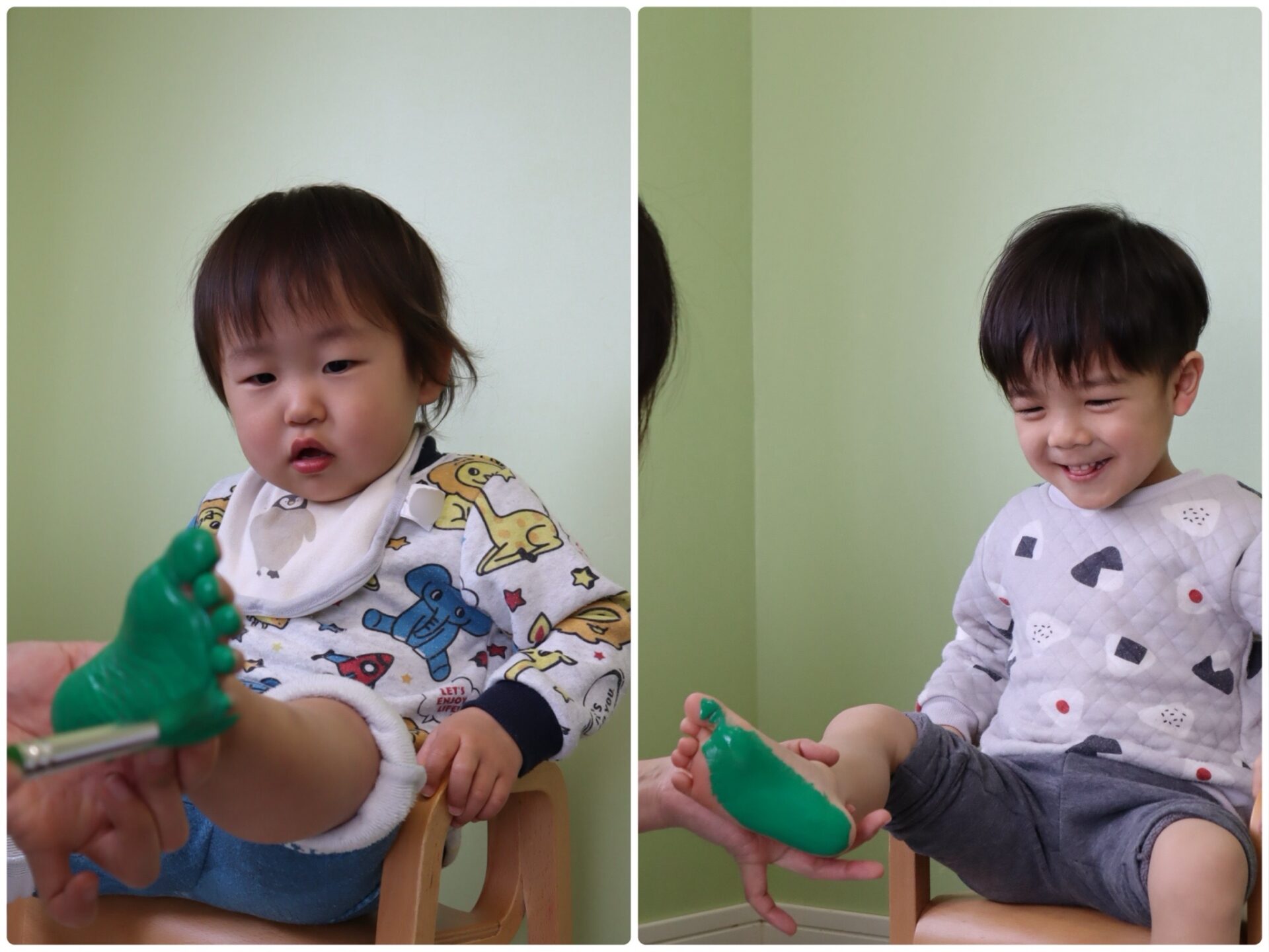 足形をとった後は、こんな風に足を洗っています。ただ足を洗っているだけですが、何だか楽しそう🎵