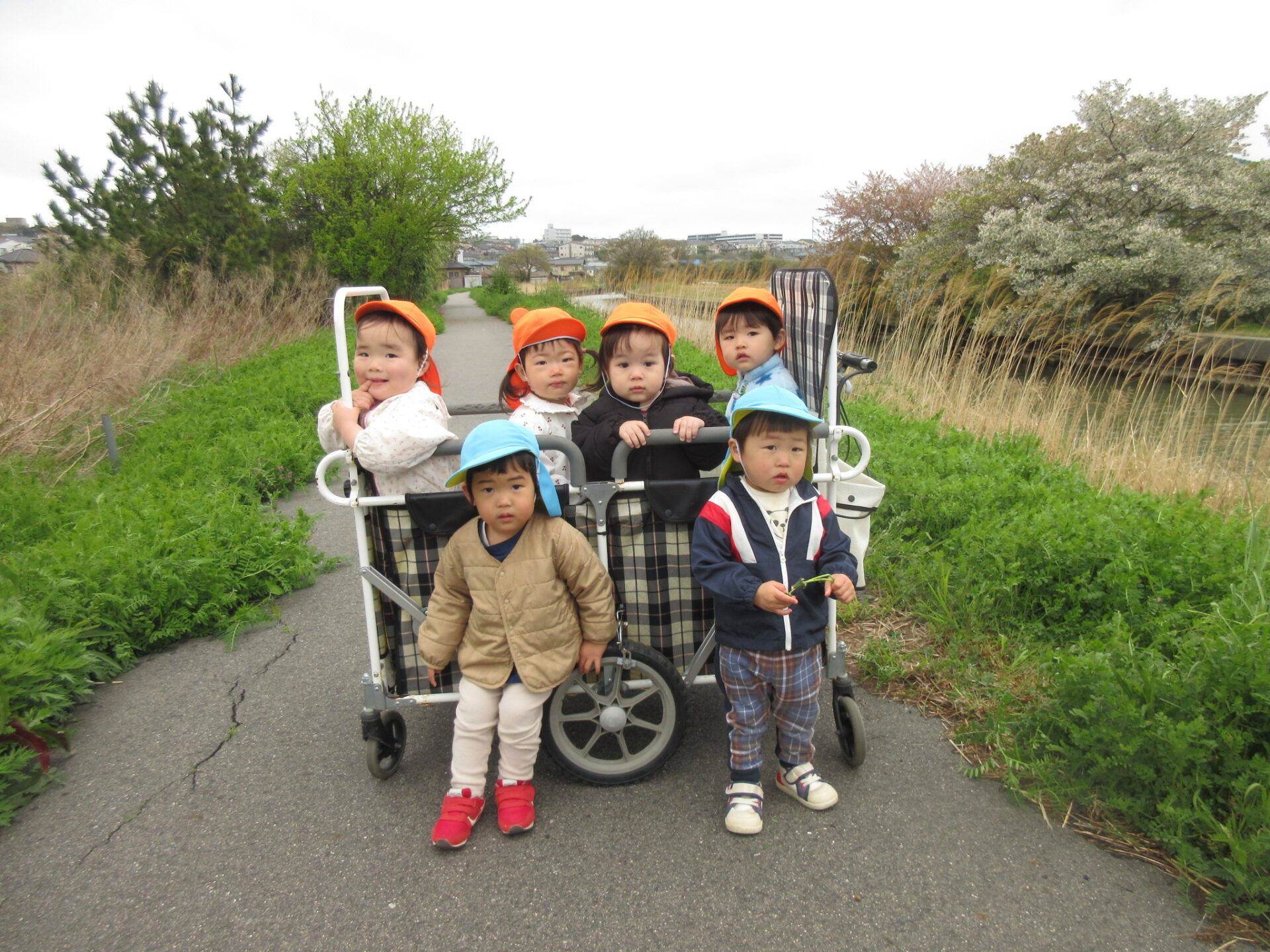お散歩先では季節の植物や虫を見たり、様々な車や動物に出会えたりと、たくさんの発見があります。犬や猫に会えた日は、みんな大喜びです!これから様々な場所へ出かけ、たくさんお散歩を楽しみたいです。