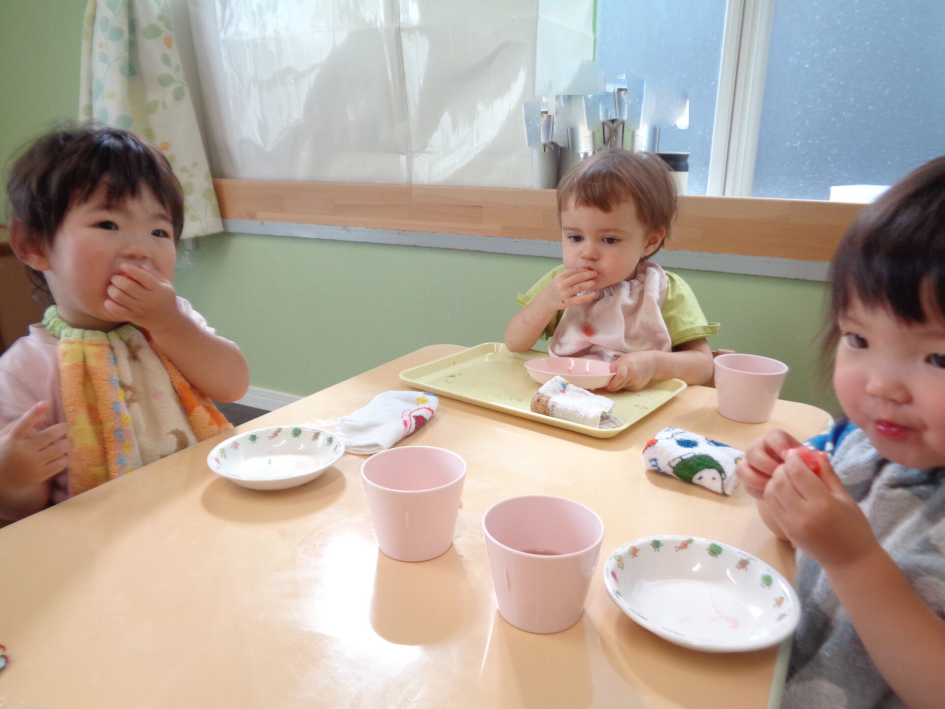 本園では食育活動を毎月一回取り組んでいます。乳幼児期の食体験は、それ以降の成長に大きく影響するものです。これからも、食の大切さを、楽しく美味しく伝えていきたいと思います😄